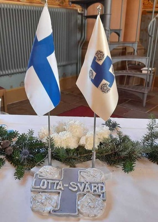 Messu päättyi seppelpartion lähettämiseen sankariristille. Narvan marssin soidessa seppelpartio kulki perinnelottien muodostamaa kunniakujaa pitkin. 95 vuotias pikkulotta seurasi seppelpartiota, vieden valkoisen ruusukimpun sodassa kaatuneen lotan haudalle.