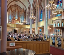 Iltaohjelmassa oli mieliä ylentävä ja viihdyttävä, Tammenlehvän Satakunnan perinneyhdistyksen järjestämä Laivaston soittokunnan konsertti Keski-Porin kirkossa. |